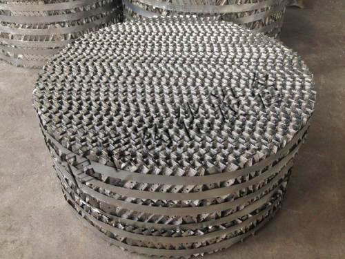 我廠專業(yè)生產(chǎn)新型高效波紋規(guī)整填料及散堆填料,可采用不銹鋼、銅、鋁、純鈦、鉬二鈦等材質(zhì)制作。在香料、農(nóng)藥、精細(xì)化工、石油化工等領(lǐng)域得到廣泛應(yīng)用。 規(guī)整填料分為網(wǎng)孔、絲網(wǎng)、孔板、壓延孔板等。