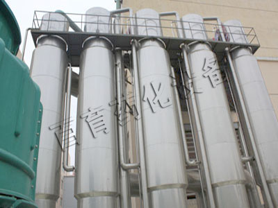 多效蒸發(fā)器主要由蒸發(fā)器、冷凝器、預(yù)熱器、循環(huán)管道、泵組、自控系統(tǒng)等構(gòu)成。